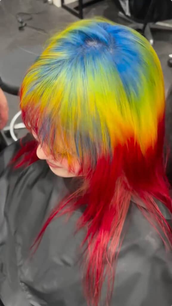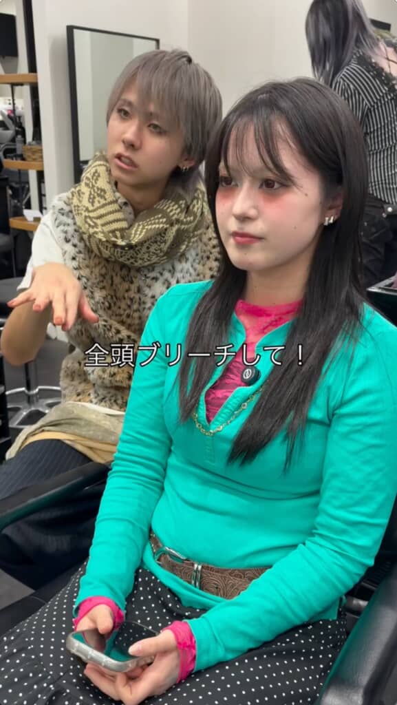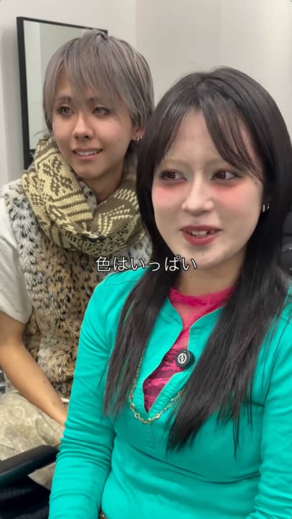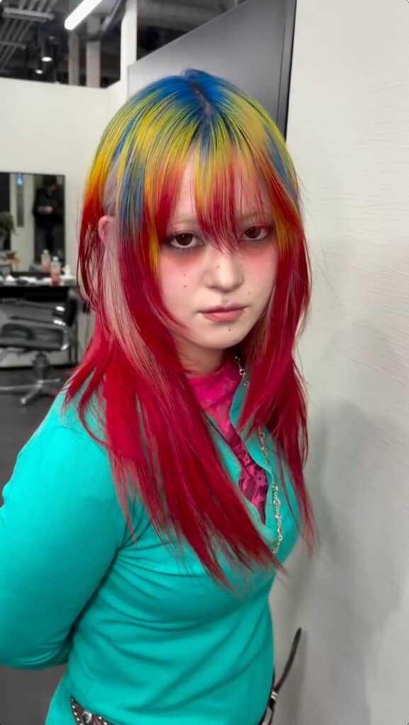 )カウンセリングでは赤やオレンジ、青など複数の色を入れる方向に。ダメージを覚悟でブリーチすることも決断