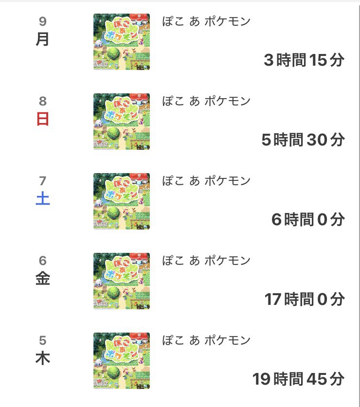 「助けて(日に日に力尽きていくのがわかる)」と添えて披露した画像は、ぽこポケのプレイ時間がまとめられたページのスクリーンショット。発売日である3月5日の欄を見ると、そこには19時間45分という驚異的なプレイ時間が表示されていました。