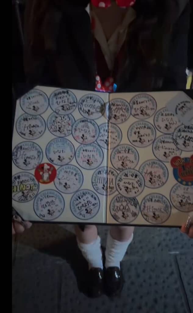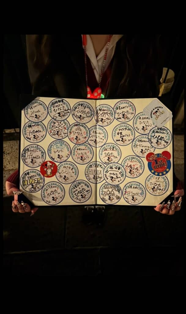 これはセレブレーションシールといって、特別な日をお祝いするためにキャストからもらえるシール。すべてのキャストが持ち歩いているわけではないのですが、投稿者さんはキャストにシールを持っているか聞いた後、「卒業のお祝いで書いて欲しいです」とお願いし、好きな場所に貼ってもらったとのこと。とてもすてきなアイデア!