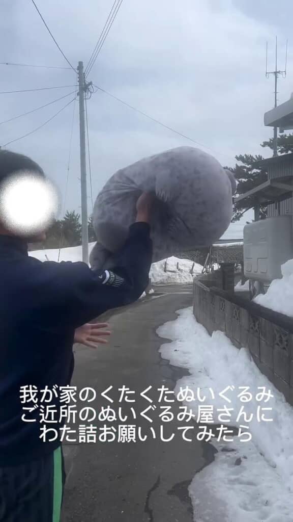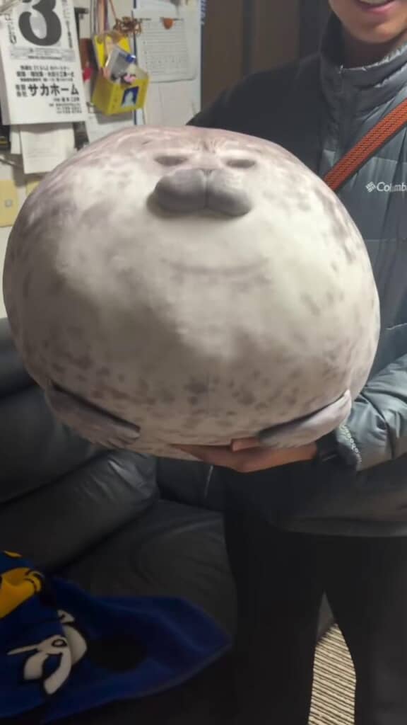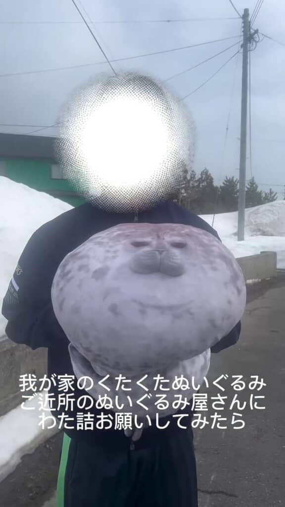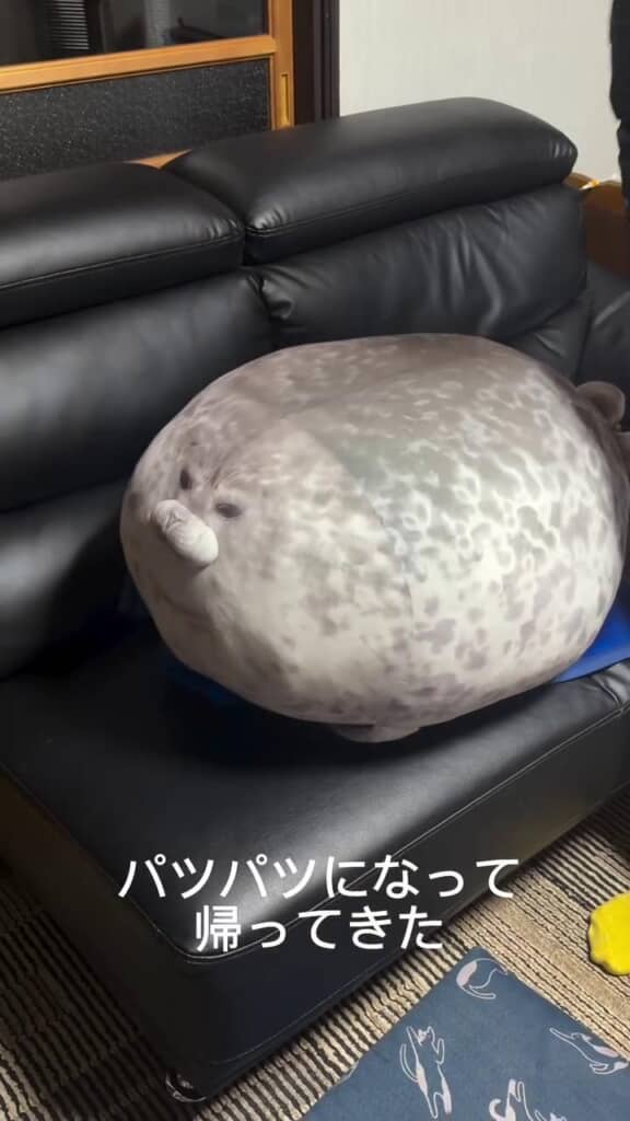 6年ほど前に大阪にある水族館「海遊館」で購入した、アザラシのぬいぐるみ。家でずっと過ごしているうちにだんだんと綿が劣化して、くたくたになってしまったのだそうです。