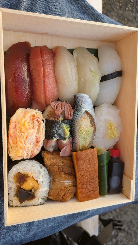 気になる中身はマグロに白身魚にホタルイカやアナゴなど、どれもていねいに握られたおすしたちがぎっしりで、お高いおすし屋さんで出てきそうな雰囲気です。漫画ではよくお土産として持って帰っている印象がありますが、想像以上にお値段がするものだったのかもしれません。とってもおいしそう!