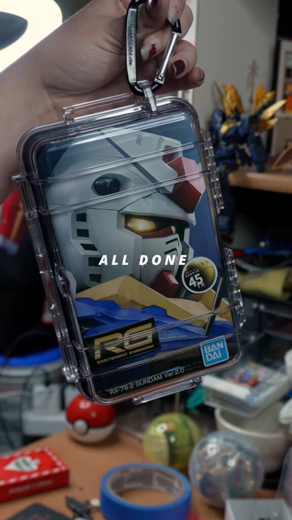 さらに、このケースの中に小さなガンプラやフィギュアを入れることで、“持ち運べるディスプレイ”としても活用可能。お気に入りの機体をいつでも身近に感じられるアイテムとして楽しむことができます。