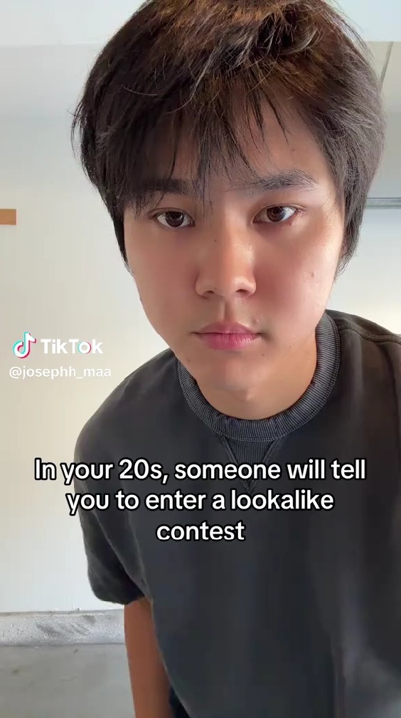 動画を投稿したのは、米在住のTikTokユーザー「josephh_maa」(@josephh_maa)さん。今回話題となっているのは、「20代のうちに、誰かにそっくりさんコンテストに出てみたらと言われるよ」とテロップが添えられた動画で、大谷翔平選手のそっくりさんコンテストに勧められた際の写真を紹介しています。投稿者さんがカメラにぐっと近づき、無表情でこちらを見つめるカットからスタートします。