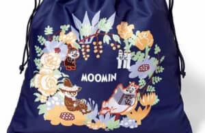 ネイビーの地色にニュアンスカラーでフラワーサークルがプリントされ、ムーミンとリトルミイの刺繍が施された大人も持ちやすいデザインです。