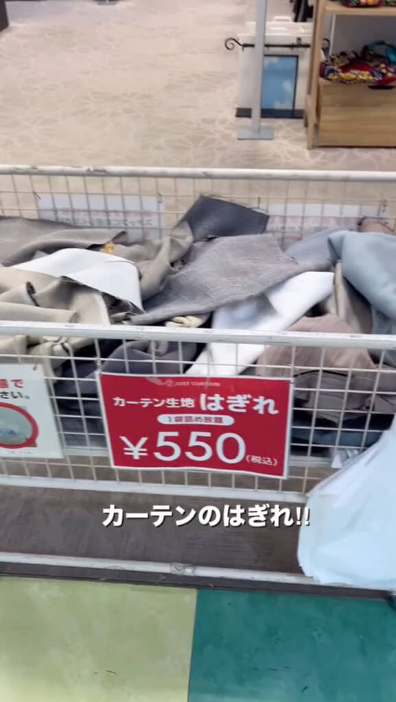 そんな中、偶然出会ったのが“カーテンのはぎれ1袋詰め放題”。色味も好みで、生地もしっかりしているのに、なんと1袋550円だったとのこと。そこで今回は、カーテンのはぎれを使って食卓椅子をリメイクしてみることに。