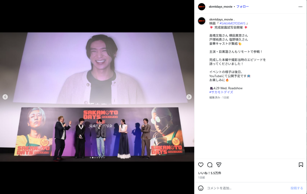 『SAKAMOTO DAYS』の完成披露試写会にリモート参加した目黒さん