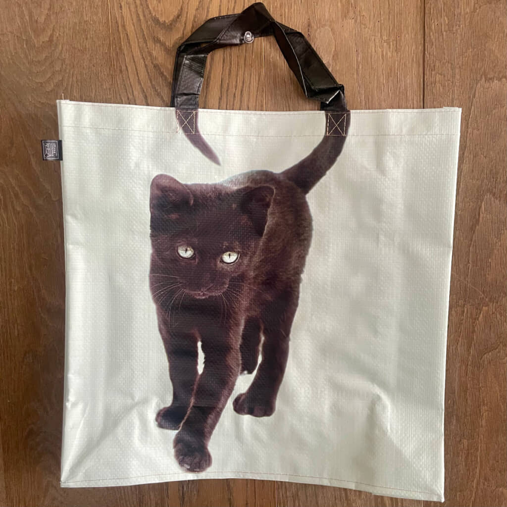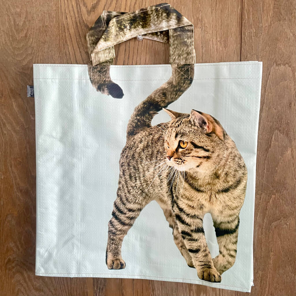 このショッピングバッグは、オランダのブランド「Esschert Design(エッシャートデザイン)」の商品。バリエーションとして黒猫のデザインも用意されており、エッシャートデザインの公式サイトにある説明には、「通常、猫は尻尾をつかまれるのを嫌がるものだ。しかし、この丈夫で広々とした買い物袋の場合、尻尾が持ち手になっている」と記されています。実際の猫だと嫌がられてしまいますが、これなら堂々と持てますね~。