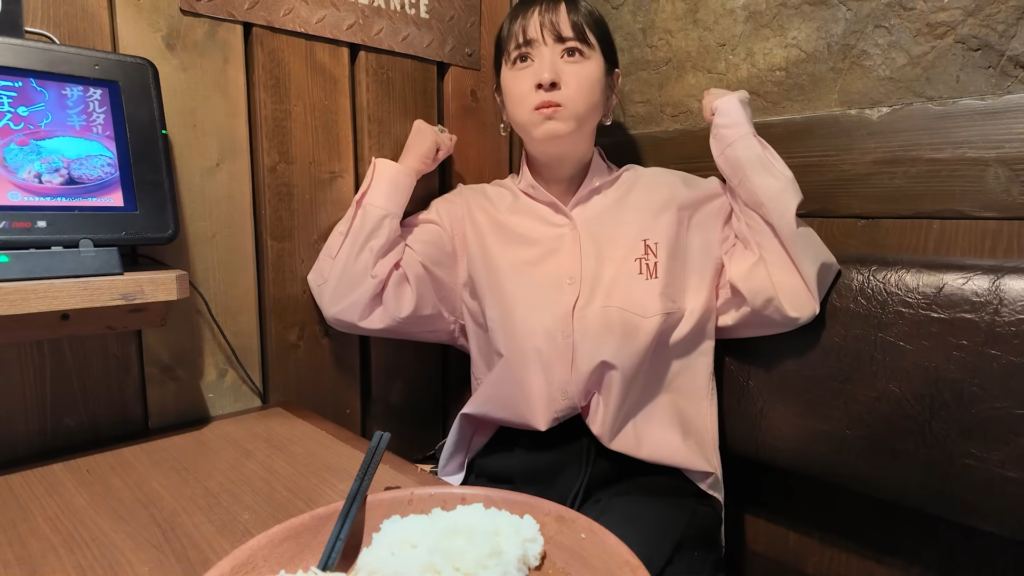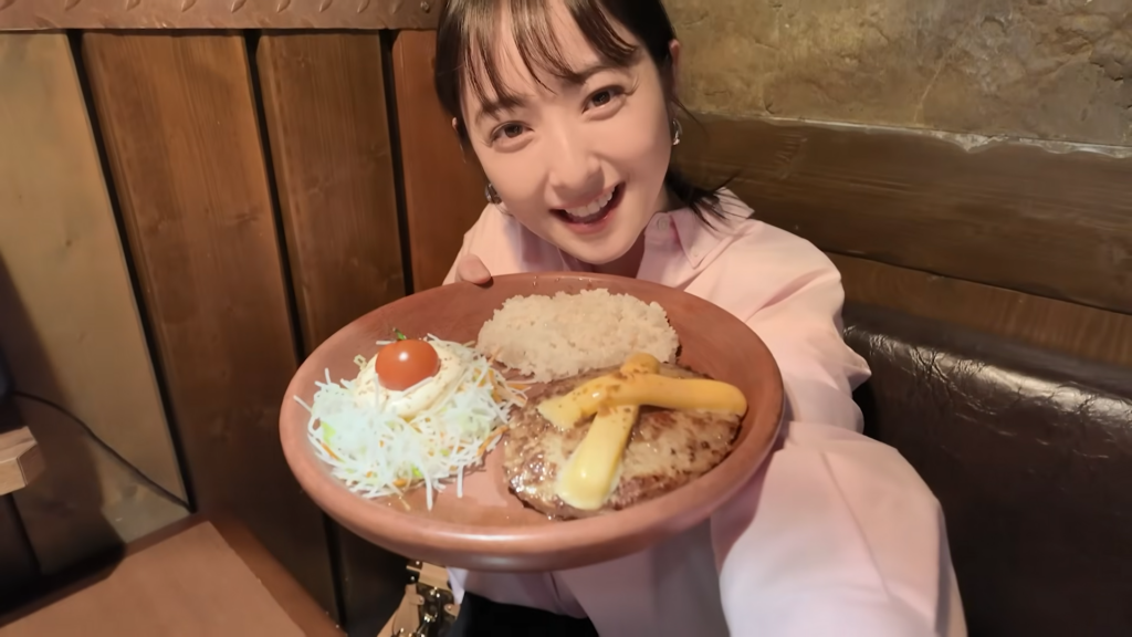 この日、仕事合間のランチで「びっくりドンキー」を訪れた佐々木さん。店舗に入る前から、「めーっちゃ大好き」「よく食べてます」と大喜びな様子を伝えており、席に着くなり「これ一択」と、迷わず定番メニューの「チーズバーグディッシュ」のライス小盛りを注文しました。
