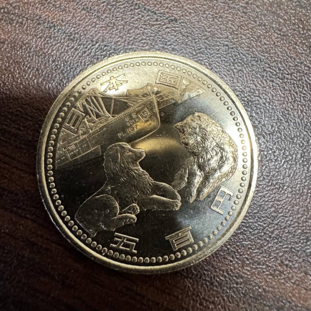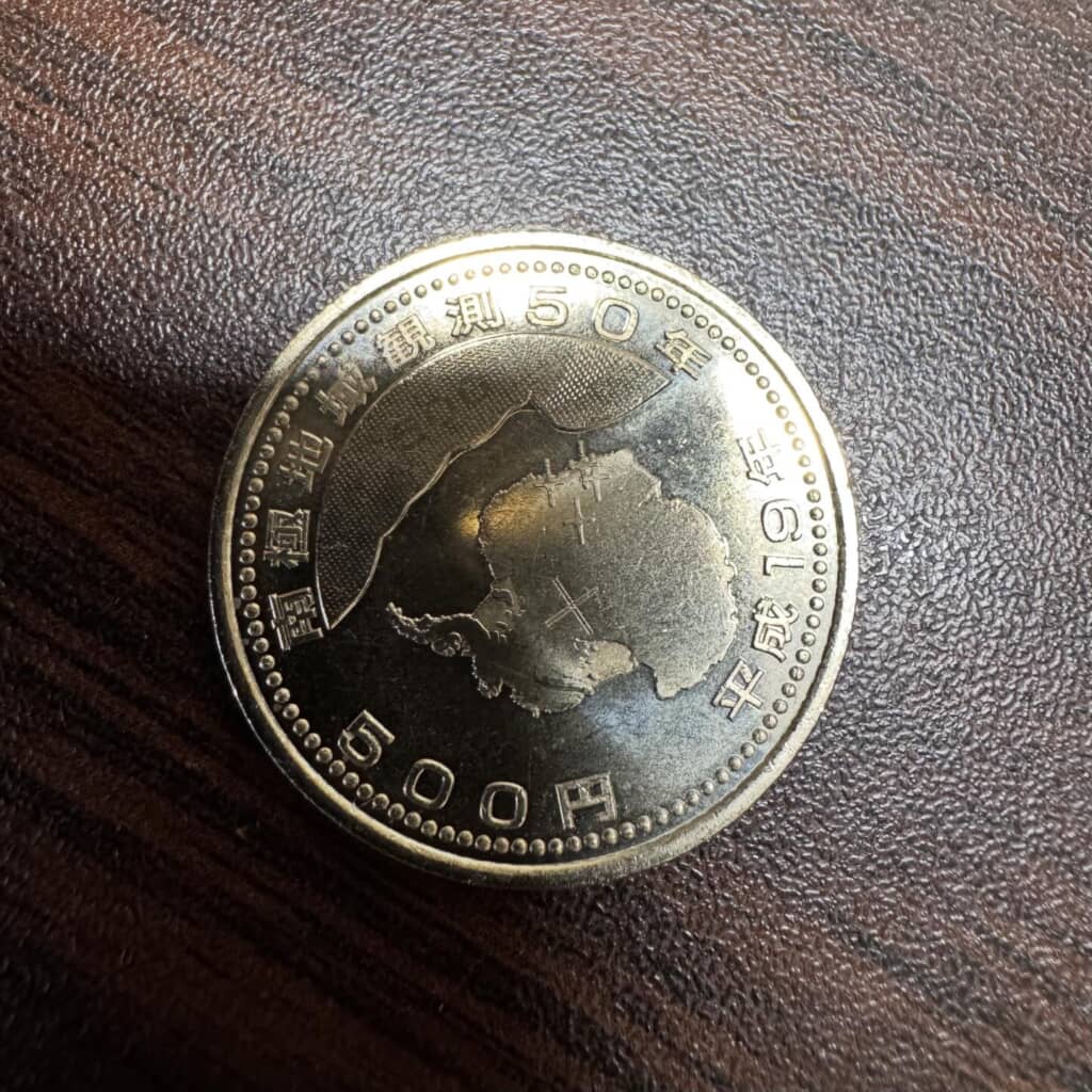 実は、この硬貨の正体は、「南極地域観測50周年記念500円ニッケル黄銅貨幣」。日本の南極観測開始から50周年を記念して、2007年(平成19年)に日本政府(財務省)によって発行された記念貨幣の一種です。