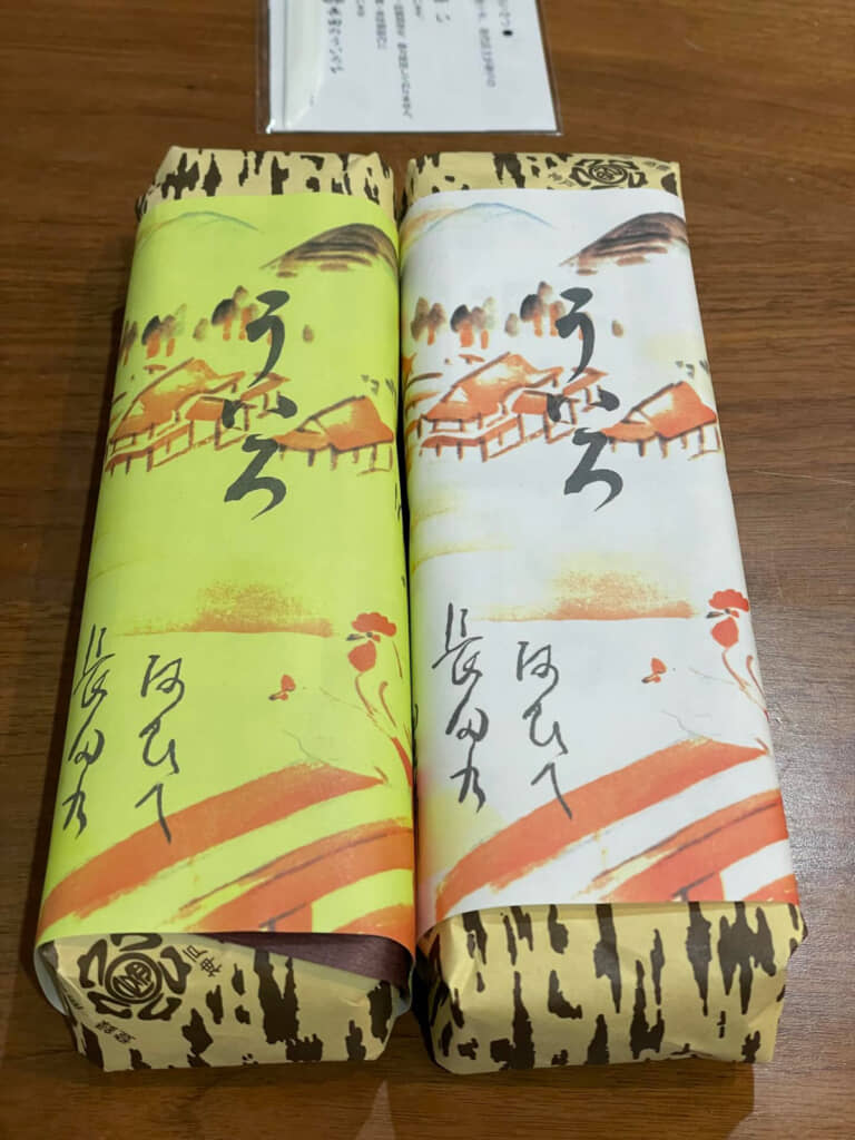 ういろうといえば名古屋をはじめとする日本各地の名産品として知られていますが、だんな君さんは「これうんまいんですよね」と、この店の白と抹茶の2種類の「ういろ」を購入したようです。