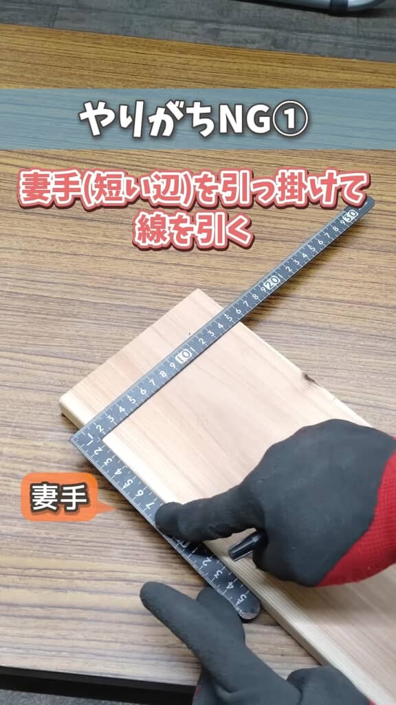 一見すると問題なさそうな使い方ですが、差し金を引っ掛ける使い方では安定性が損なわれてズレが生じやすいといいます。