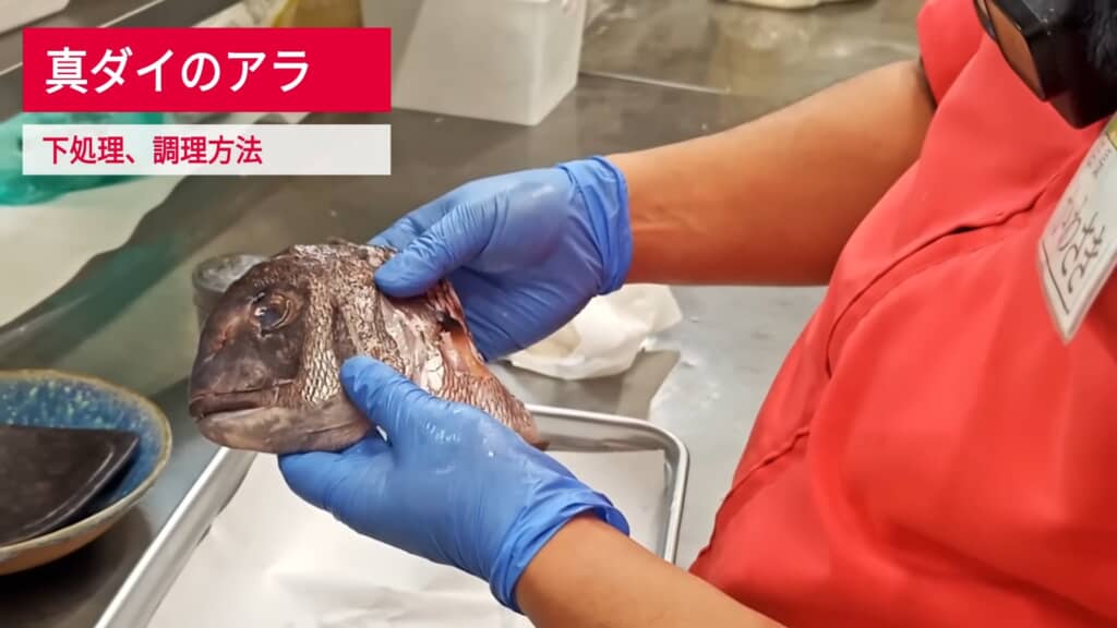 真鯛の頭を調理する際、最大の難関は「ウロコ」です。細かい部分はなかなか取れず、面倒くさく感じてしまいます。そこでプロが勧めるのは「沸騰させた85~90度のお湯に5~10秒つける」という手法。これでウロコが少し逆立つので、その後のウロコ取りの作業がスムーズになり、臭みもとれるので一石二鳥だといいます。