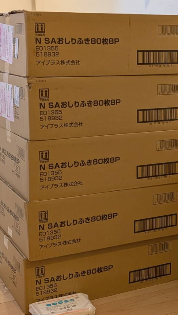 大量に誤発注してしまったおしりふきが到着