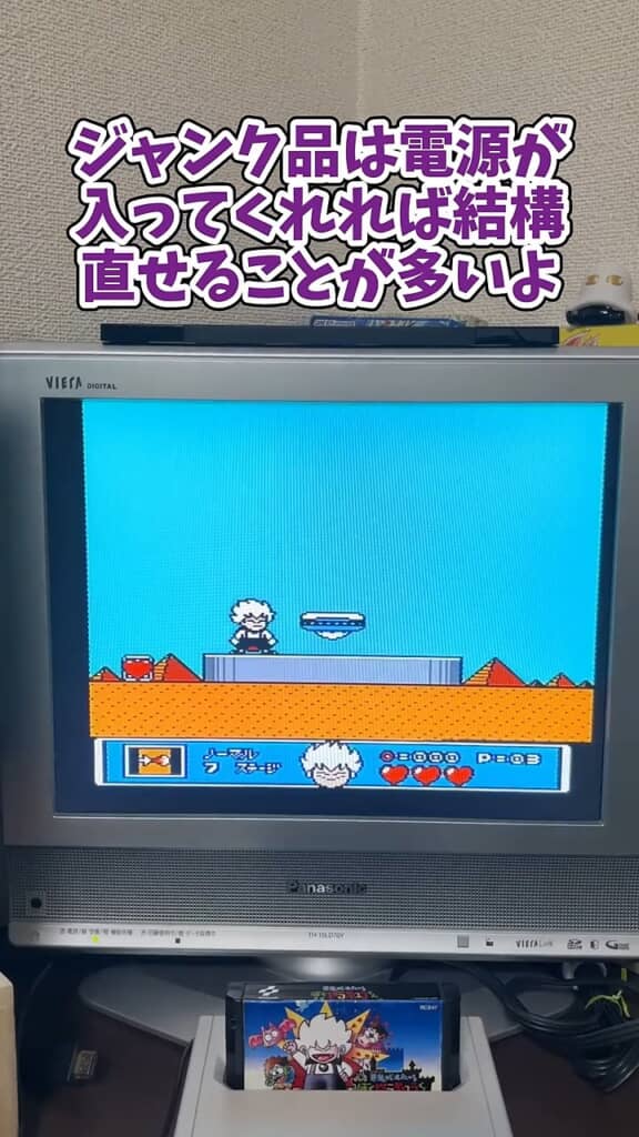 ごく簡単な処置でしたが、これが効果てきめん。カセットを差して電源を入れると、テレビにはゲーム画面が正常に表示され、問題なくプレイすることができました。