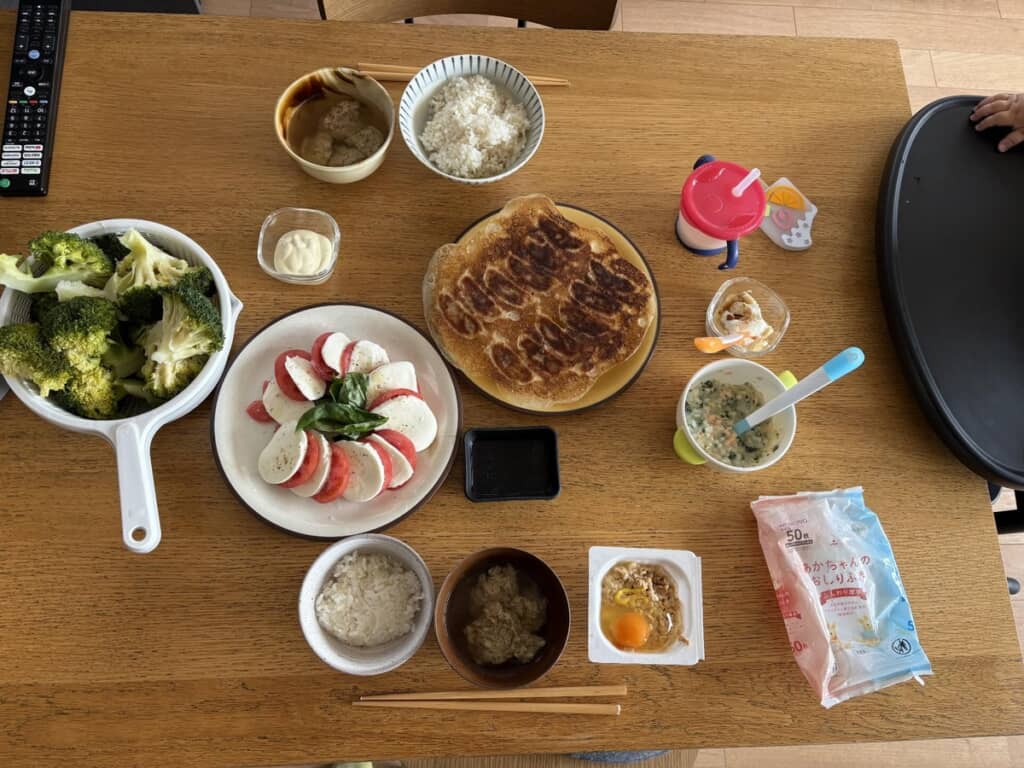 この反響を受けて、オブチさんは夫がいる日の昼食の様子も公開。「ブロッコリーはボールのまま食卓に置くスタイル 納豆は皿に移しません 餃子は味の素さんの焼くだけ餃子です」と無理のないスタイルながら、ボリュームたっぷりメニューが並んでいました。