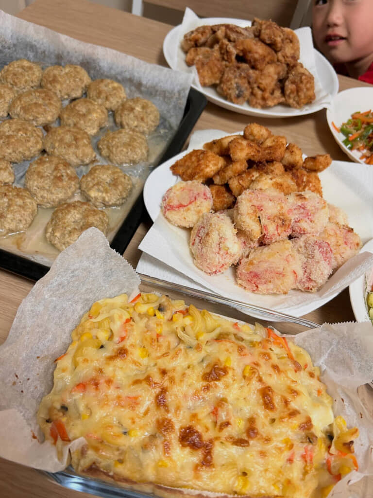 3時間かけて作った料理は、1時間かけて小分けし冷凍庫へ。計4時間の大仕事になりましたが、これで学童の当日は解凍してお弁当箱に詰めるだけで済みますし、朝の支度がだいぶ楽になりそうです。