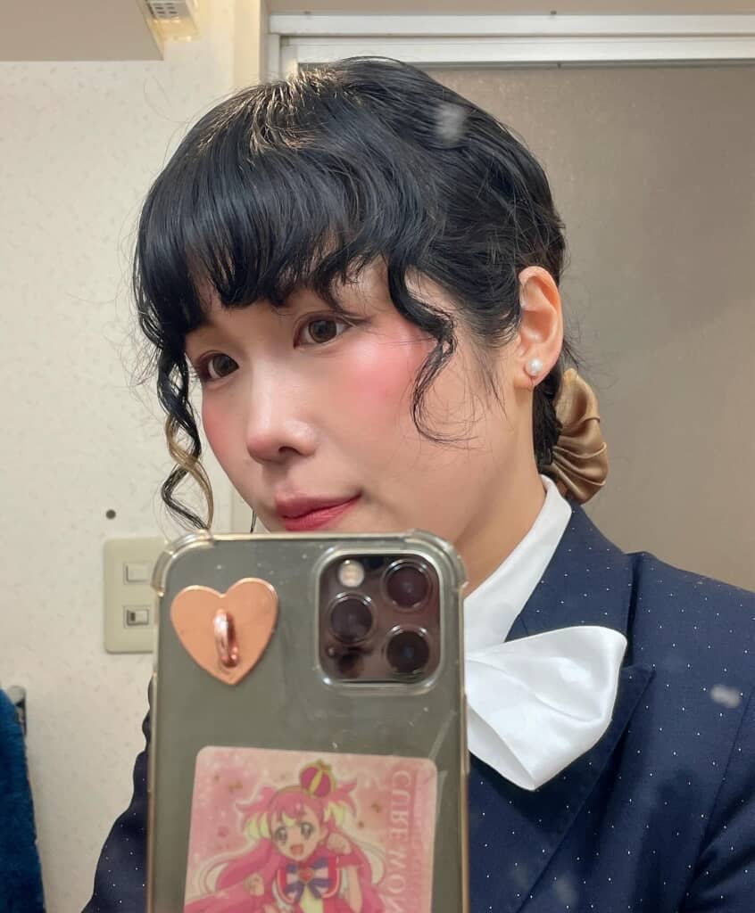 鏡越しに撮影されたセルフィーでは、柔らかなメイクと整えられたヘアスタイルが印象的。ほんのりとした頬の赤みや、丁寧に整えられた髪型からも、この日を大切に迎えた様子が感じられます。