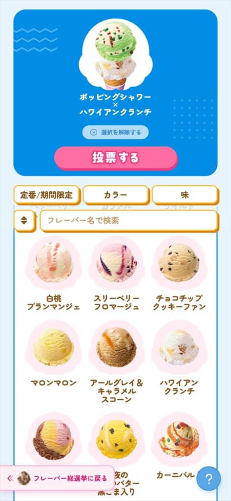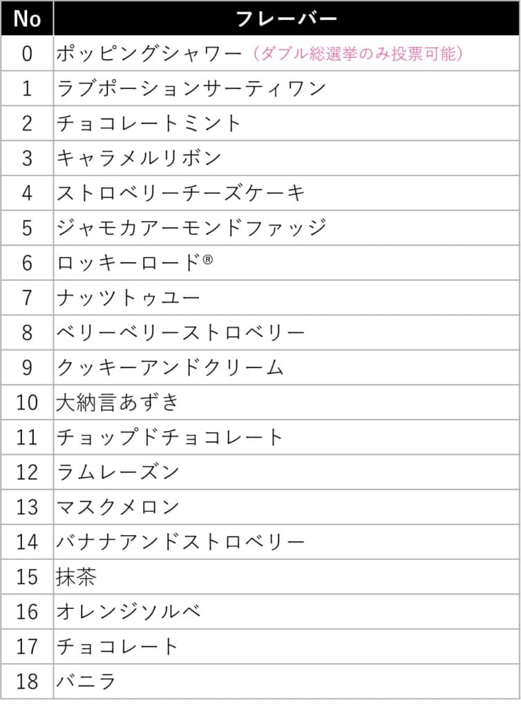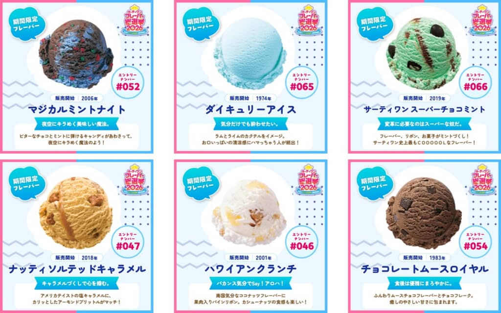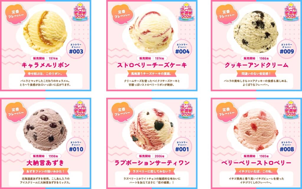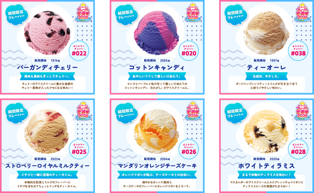 サーティワンの「フレーバー総選挙」今年も開幕! 100種のフレーバーがエントリー、殿堂入り「ポッピングシャワー」も「ダブル総選挙」限定で投票可能