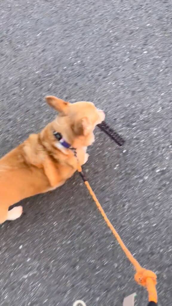 何かをくわえて散歩するコーギー、よく見たら……「そんなことある!?」 “まさかの正体”に「なんで」「遭遇したい」
