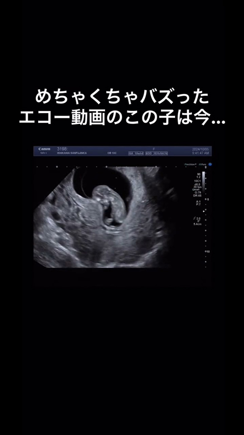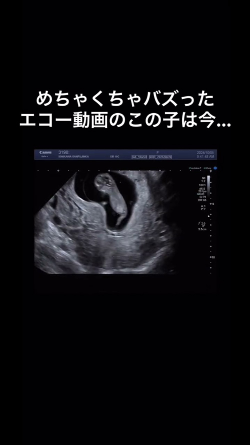 そして今回の動画では、「めちゃくちゃバズったエコー動画のこの子は今……」として、成長した現在の姿を紹介。無事に生まれて、すくすくと成長しているようです!