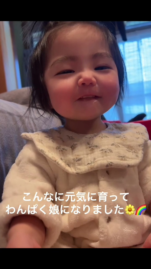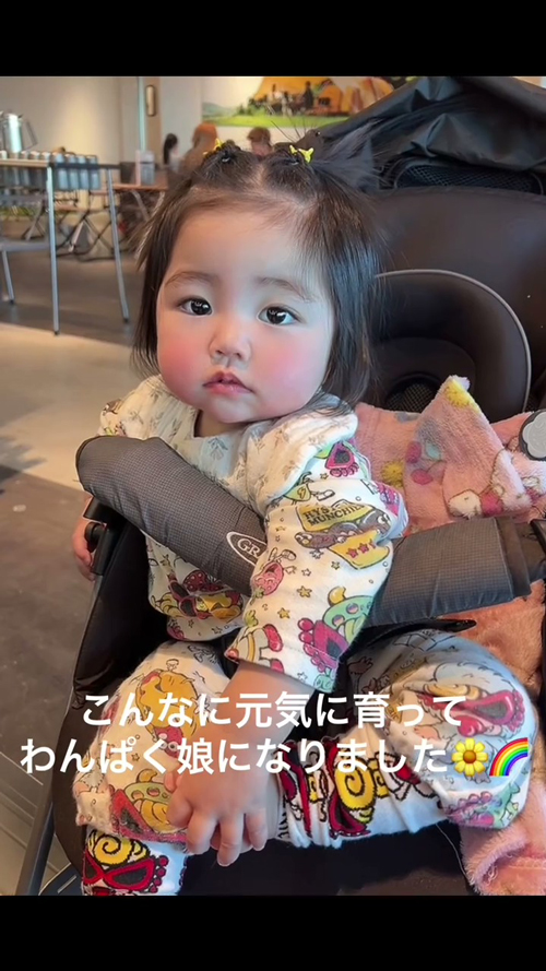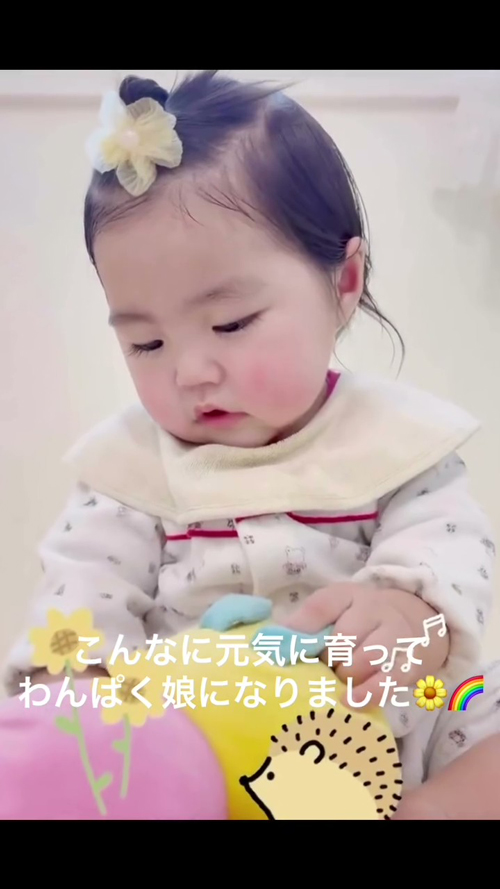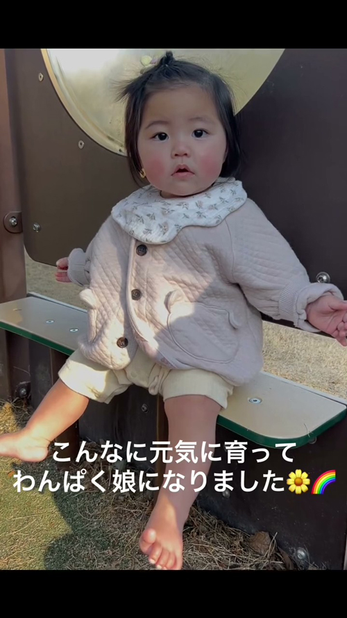ママは「わんぱくな女の子に育っています」とコメント。「足がめちゃくちゃ強くて、捕まり立ちもめちゃくちゃ早かった」そうです。