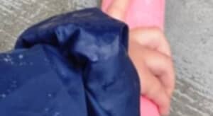 幼稚園生の息子くんが手にして遊んでいるのは、紫、青、緑、黄、ピンクの5色セットになった大きなチョークです。息子くんの横幅ぐらいありそうな圧巻の見た目に驚きを隠しきれませんが、なんとこちらは220円だそう。こんなに大きいのにうれしいお値段です。