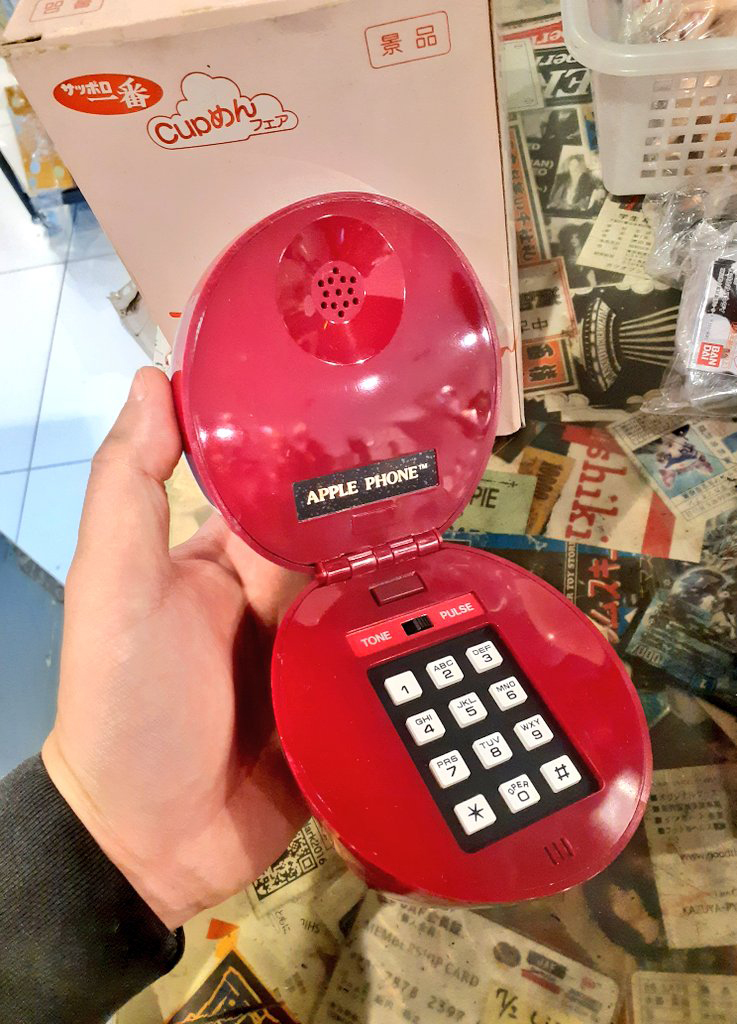 実はこのリンゴ、サンヨー食品がかつて実施していたキャンペーンの景品。リンゴの形をした「フルーツテレフォン」なのです。