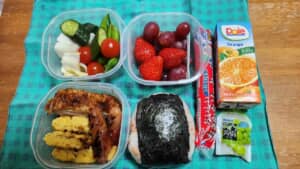 見ているだけで食欲をそそられるラインナップで、これは食べる前から気分が上がりそう……! 豪華な仕上がりはもちろん、おかず・野菜・フルーツがそれぞれの容器に小分けされている様子からも、「お昼を食べて午後も元気に過ごしてほしい」という細やかな気遣いと愛情が伝わってきますね。