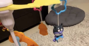 おもちゃはメインテーマに合わせて、アンパンマンやばいきんまんがくるくる回っており楽しそうです。しかし、その様子を見つめる赤ちゃんの表情は、まさかの無表情でした。楽しい音楽とは対照的に、しかめっ面でじっと一点を見つめる赤ちゃんの姿がシュールですね。