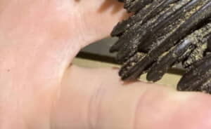 今回、「これ何かわかる人いますか?」「ヒント:お茶」という問いとともに紹介するのは、棒状のものが集まってかたまりになったもの。全体的に黒っぽい暗い色調であり、棒状のものが集合している姿はどこかまがまがしい感じもします。正体が分からず見た第一印象は「怖い」かも。