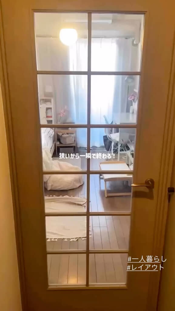 投稿したのは1K6畳の部屋で暮らすOLの「なの」(@nano_cozy_days)さん。限られた空間でもインテリアを楽しむ様子を発信しており、今回は一人暮らし5年目の部屋を紹介する動画を公開しました。