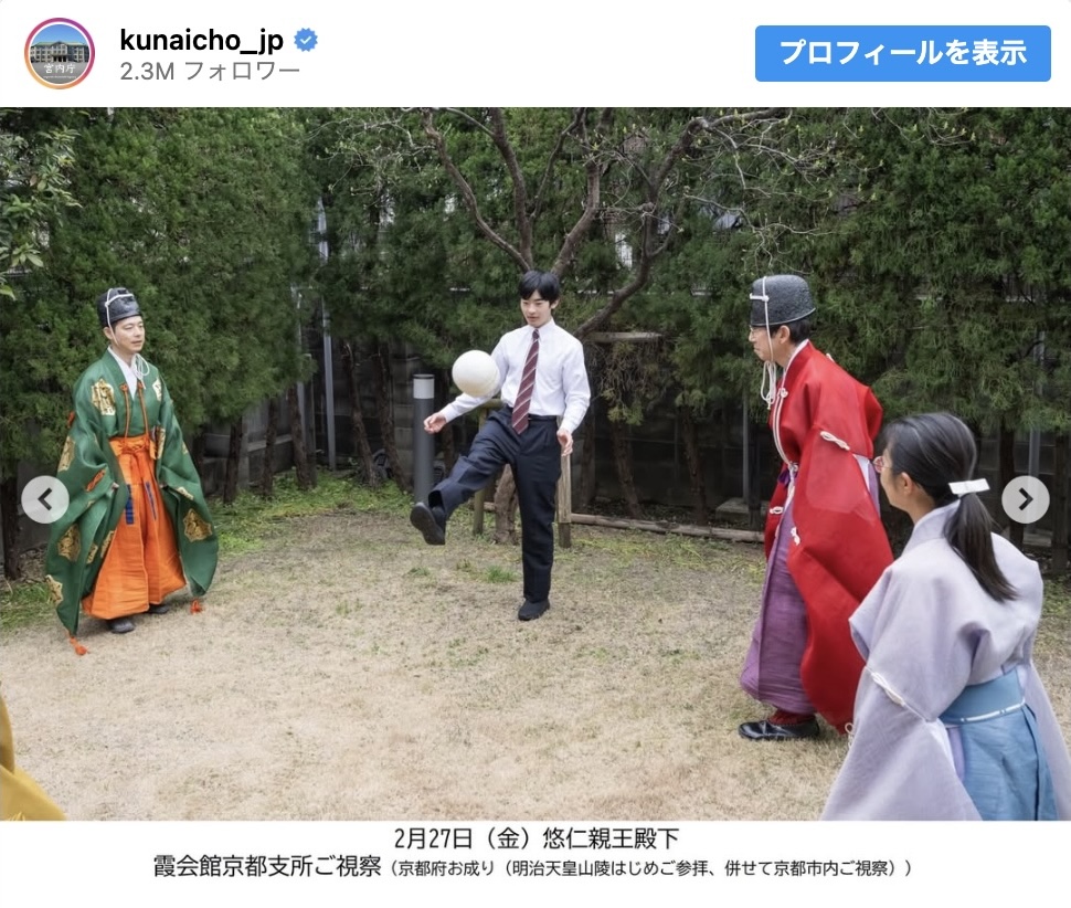 宮内庁は4月9日、2月・3月の秋篠宮家の活動を公式Instagramで振り返りました。秋篠宮家の長男・悠仁さまが「蹴鞠(けまり)」を体験する様子などが投稿され、投稿には総数で約5万3000件の“いいね”が寄せられています。