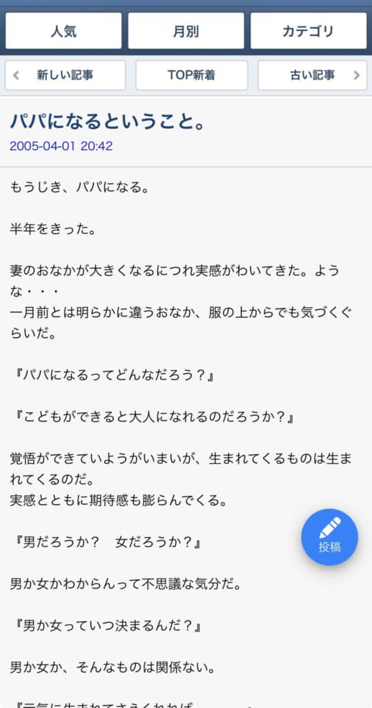20歳の女性が父のブログを見つけ、そっとページをめくってみたら……。自分が生まれた日の記事の画像がThreadsに投稿されました。記事執筆時点でこの投稿の閲覧数は150万回を突破し、“いいね!”は3万6000件を超えています。これは涙なしには読めない……。
