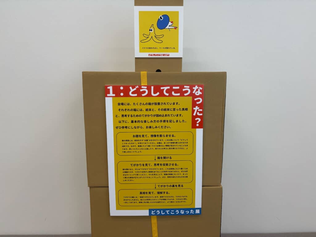 「バナナの皮のそばに、ケーキが落ちている。どうしてこうなった?」ーーそんな「どうしてこうなった?」という問いを集めた「どうしてこうなった展」。2025年10月に開催されSNSで話題を呼んだ体験型企画展が、4月26日まで期間限定で復刻開催されています。「どうしてこうなった?」のかその謎を明かすべく、ねとらぼ編集部の石関が体験してきました。