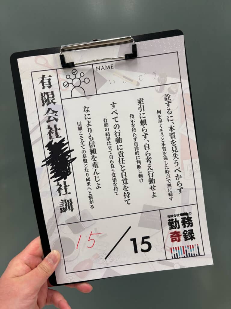 また、ライオン本社4階では現実と虚構の境界を超える没入型体験レーベル「ヰ空間」(@i_kukan)がプロデュースする「ヰ体験」コンテンツ「有限会社■■■■の勤務奇録」も同時開催中。“怪しい”雰囲気がプンプン漂う架空の会社を探索し、真相に近づくため15個の質問に答えていく体験型エンターテインメントで、濃密な謎解きに挑戦できます。チケットは1200円ですが、「どうしてこうなった展」との通しチケットだと3000円で購入可能。こちらも大変楽しかったので、おすすめです!