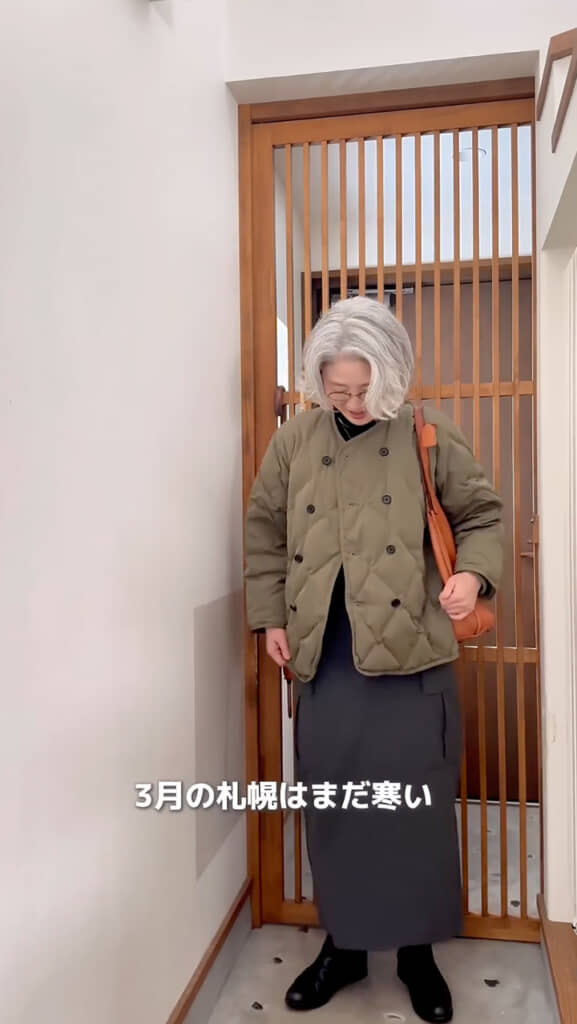 春の陽気を感じる季節になりましたが、この動画が公開された3月の北海道はまだ肌寒く、場所によっては雪が残っていたそうです。そこで今回は、GUの「カーゴロングスカートQ(ダークグレイ)」を取り入れた“春先コーデ”を紹介します。