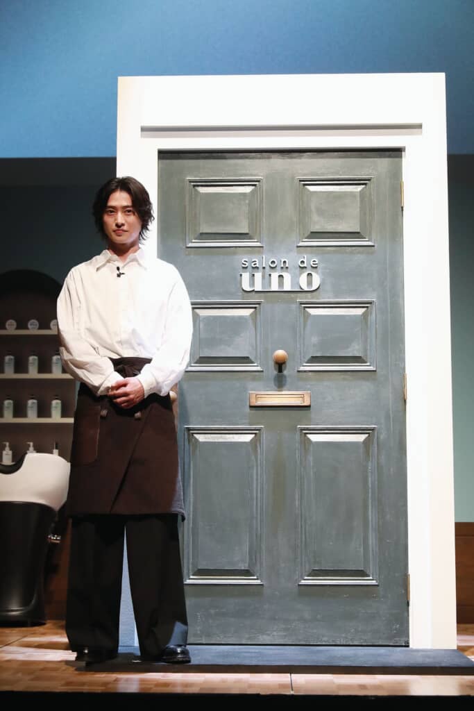 そして新商品の紹介後、檀上にはCMに登場するサロン「salon de uno」の扉が用意され、そこから山﨑賢人さんが登場する粋な演出と共に新CMが発表されました。