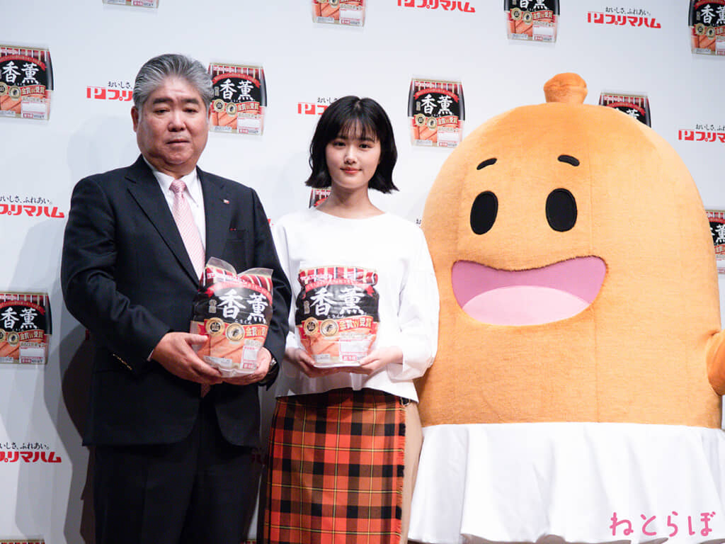俳優の原菜乃華さんが4月13日、都内で開催された「プリマハム 香薫(こうくん)あらびきポーク」の新CM発表会に登場しました。