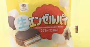 「生エンゼルパイ」(298円)は、「エンゼルパイ」をイメージしたチルドデザートで、ホイップとマシュマロを花のような形のビスケットでサンドしてチョコでコーティングしています。