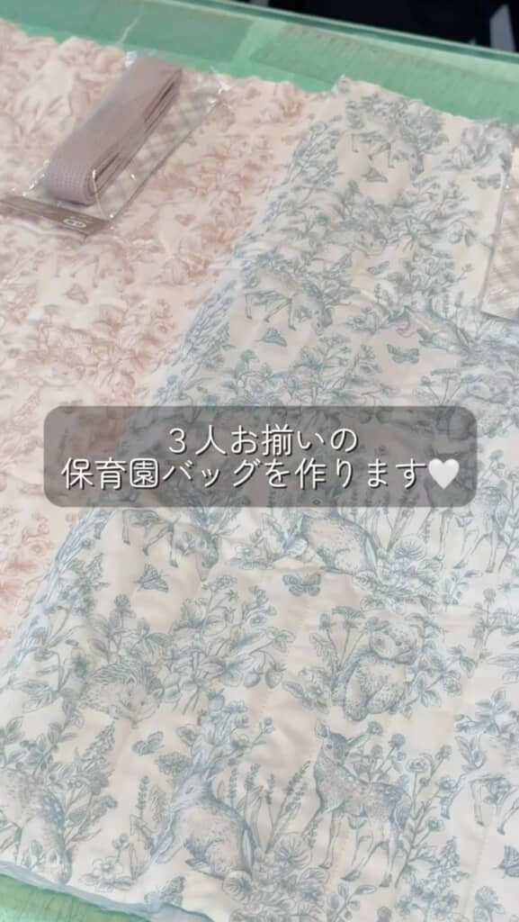 今回注目を集めたのは、るかくんとるいくんが保育園に入園する前日に、子ども3人分のおそろいバッグを作る様子です。入園準備でバタバタしているうちに前日になってしまったそうで、2人が寝ている間に急いで作業を開始します!