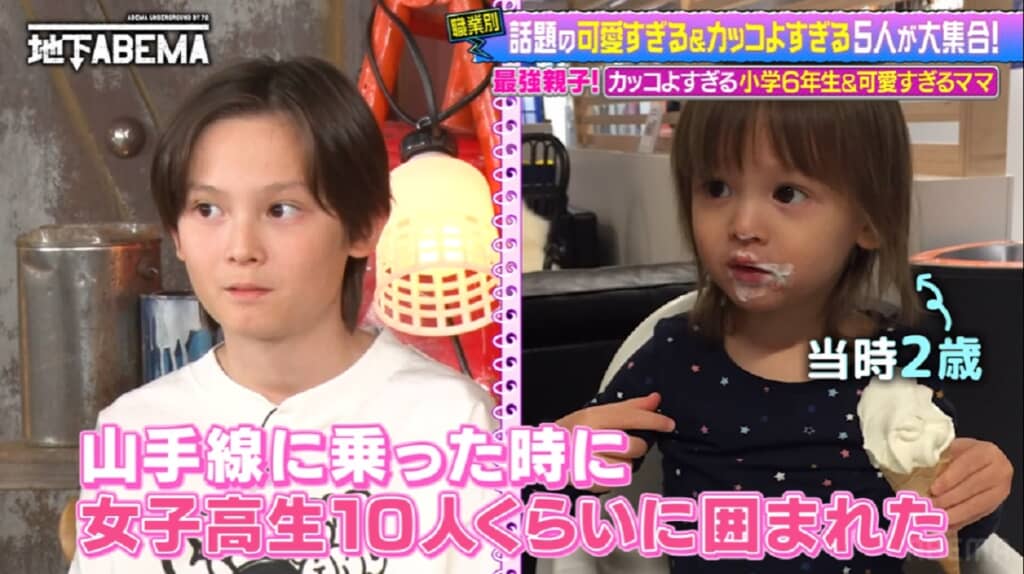 母親いわく、「生れた瞬間から出来上がってた」とのこと。「山手線に乗ったときに女子高生10人くらいに囲まれましたね」「かわいい! って言われて」と幼少期のエピソードも披露していました。