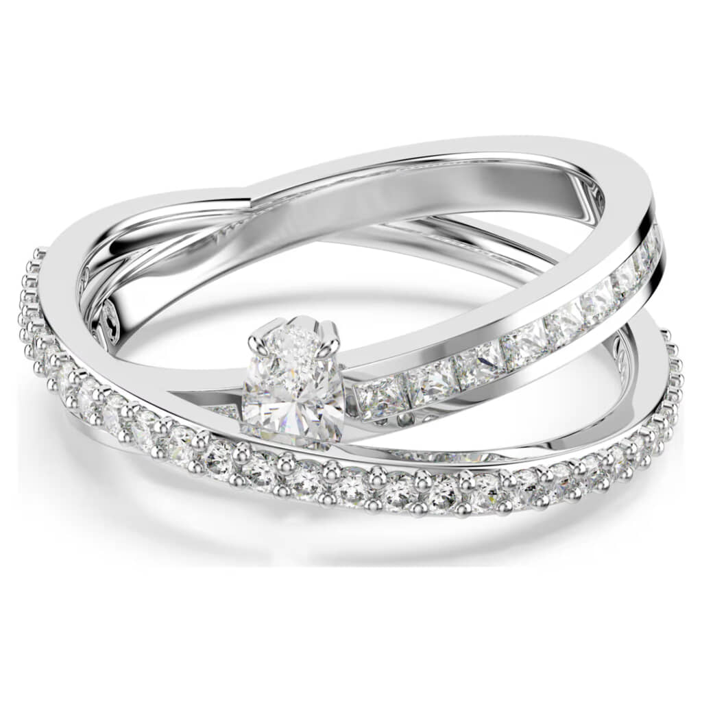 「Hyperbola リング」はツイスト状に交差する2本のバンドが印象的なデザイン。チャネルセッティングとプロングセッティングであしらわれたジルコニアに加え、中央のオーバルカット・クリスタルがアクセントになっています。