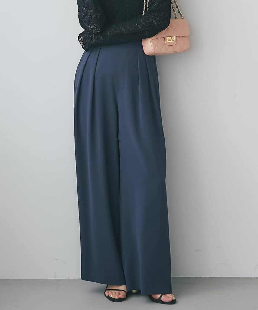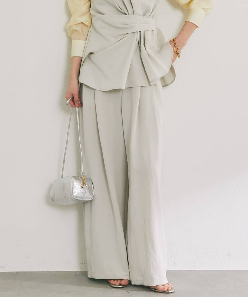 3枚目はワイドパンツです。首が詰まったカーディガンを合わせてしまうと「野暮ったく見えておばさんコーデ」になりがちだそうで、首元は思い切って開いたものを選ぶと良いとか。今回、risaさんが合わせたのはトレンドのオフショルダー。一気に垢抜けましたね!