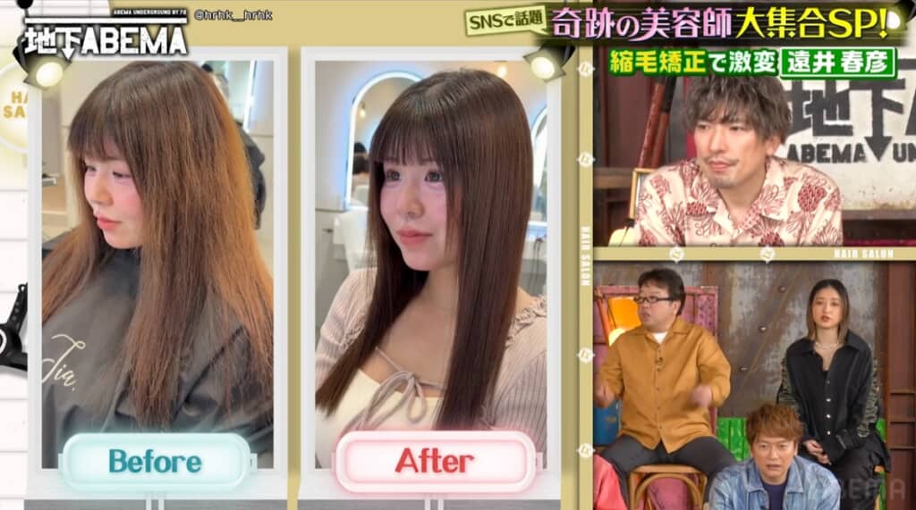 スタジオに姿をみせたのは「表参道Tia.」の遠井春彦さん(@hrhk__hrhk)で、年間2000人以上を担当し、現在では海外からも理想のストレートヘアを求めて店を訪れる人がいるとのことです。