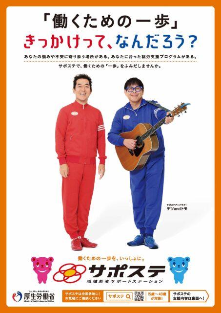 実は掲示されていたのはトイレの目印……ではなく、厚生労働省が管轄する、就労に向けた支援を行う機関「サポステ(地域若者サポートステーション)」のポスター。赤と青のジャージーがトレードマークの「テツandトモ」がアンバサダーとしてポスターに掲載されていたのです。トイレの目印と同じ赤・青の色で立っていることもあり、遠目で見たら勘違いしてしまいそうですね。