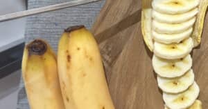 話題を呼んでいるのは、皮をむかれてスライスされたバナナの写真。とてもおいしそうに熟しているように見えますが……。よくよく見ると、バナナはガラスケースのようなものに入っていて、しかもまるで重力を無視するかのように、まな板とともに立てかけて置いてあるのです。どういうこと?