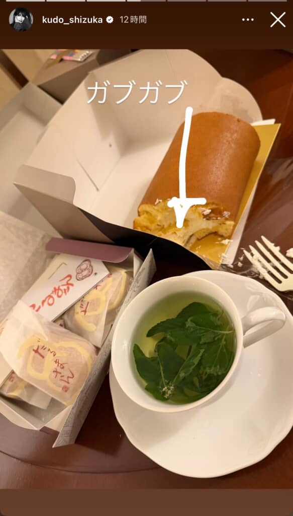 添付された写真にはハーブティーの他、ロールケーキやまんじゅうも収められており、スタッフと一緒に仲良く味わったことがうかがえます。ステキなひととき……!