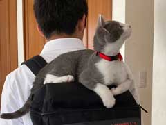 猫「いってきますニャ」飼い主「ちょっとまて」 高校生男子のカバンに乗って一緒に登校しようとする猫がかわいい
