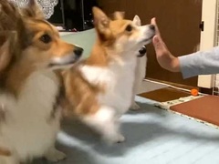 足が短いコーギーの悲劇、ハイタッチしようとしたら…… まさかの失敗→ごまかす表情に「可愛すぎ」「ジワる」