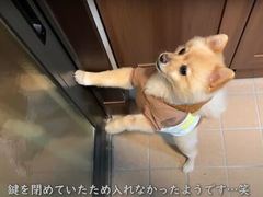 大好きなお父さんの帰宅に気付いたポメラニアン 玄関にしがみつくお出迎えに「疲れも吹っ飛んじゃいますね」の声